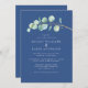 Invitation Mariage bleu classique simple Eucalyptus Foliage