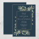 Invitation Mariage Bleu de Mer Profond et Feuillage de Vert D