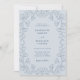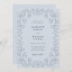 Faire-part de mariage bleu Dusty romantique. Romantique et intemporelle, cette faire-part de mariage bleue poussiéreuse présente des roses floraux d'art vintage disposés dans un cadre chic qui peut être utilisé pour toute saison mariage. Ajoutez une touche d'élégance moderne et classique à votre journée spéciale avec ces invitations de mariage élégantes et magnifiques. Texte de la marine sur un arrière - plan gris bleu.