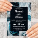 Invitation Mariage bleu marine et blanc avec vagues de marbre
