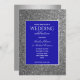 Cette invitation de mariage de luxe classique et élégante combine l'argent pailleté chic et le bleu royal avec une écriture calligraphique moderne. Le choix parfait pour les mariages d'hiver glamour, ajoutant une touche d'étincelle et de sophistication à votre jour spécial.