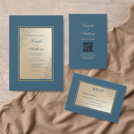 Navy Gold Rectangle Floral Boho WeddingConçu par Dia Sha