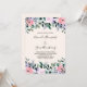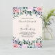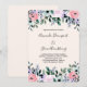 Une invitation de mariage avec un joli dessin floral réalisé à l'aquarelle. Fleurs de jardin roses, violettes et vertes.