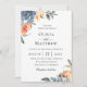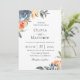 Belle aquarelle, ardoise bleu et pêche, fleurs botaniques et feuillage, faire-part de mariage. Le style de police et la couleur peuvent être customisés. Le dos de la carte est en ardoise solide bleu couleur.