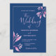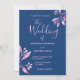 Invitation Mariage botanique bleu marine rose pâle