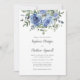 Ces invitations de mariage comprennent des roses bleu pastel à l'aquarelle avec feuillage de feuilles d'eucalyptus. Personnalisez-les avec votre texte. Suite mariage et produits d'accueil correspondants sont également disponibles.