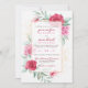 Cette invitation chic conviendra parfaitement à quelqu'un qui planifie un mariage dans une élégance chic et branchée. Cette jolie invitation chic apparaît dans un merlot sucré avec de mignons fleurs douces de rose pâle sur un arrière - plan blanc de coton. Cette invitation est ornée de roses rouges et d'un cadre doré et revient au rouge foncé. Le texte de votre parti est affiché dans d'excellentes lettres de script. Ils sont parfaits pour ce couple moderne. Il est facile de les customiser pour en faire des vôtres uniques. Nous sommes honorés de faire partie de votre célébration spéciale.