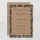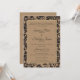 Invitation en papier kraft naturel couleur marron avec décoration vintage de style noir damassé et texte traditionnel. Un cadre doré raffiné apporte une touche d'élégance supplémentaire.