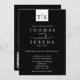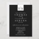 Un design moderne noir et blanc classique, poli, qui respire l'intemporalité et le raffinement. Ajoutez l'URL de votre site Web mariage au verso de la carte qui mettra à jour le code QR, (ou supprimez si non nécessaire). Les clients peuvent simplement scanner le code QR pour accéder à une multitude d'informations sur tous vos détails et mises à jour mariages, etc. Un invitation pratique et économique, sans avoir besoin d'ajouter des boîtiers RSVP séparés. Cliquez sur Personnaliser/customiser pour plus de détails.