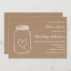 Invitation de mariage avec arrière - plan en papier kraft brun rustique avec chic bocal en maçon et illustration cardiaque, belle et unique.
