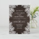 Cette invitation de mariage vintage et élégante est parfaite pour un événement de classe. Il est orné d'une dentelle blanche dessinée à la main sur un arrière - plan en bois marron rustique. C'est sud, joli, sucré, moderne et unique, le design parfait pour impressionner vos invités. ***REMARQUE DE CONCEPTION IMPORTANTE : Pour toute demande de conception personnalisée comme les demandes de produit correspondant, les modifications de couleur, les modifications de placement ou toute autre demande de modification, envoyez un message au concepteur. Vous pouvez même lui envoyer une demande pour un design entièrement personnalisé et nouveau.