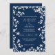 Simple et doux, mais élégant, Baby's Breath ont été peints à la main dans des pastels à l'huile par Audrey Jeanne Roberts pour une prise moderne sur les mariages campagnards rustiques. Votre texte faire-part de mariage est présenté dans un style typographique contemporain qui est populaire et tendance. Sur une couleur arrière - plan bleu marine que vous pouvez changer à n'importe quelle couleur que vous souhaitez à l'aide de l'outil de sélection de couleurs arrière - plan.