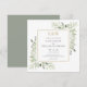 Caractérisé par de délicates feuilles de verdure aquarelle d'eucalyptus et de chic monogrammes dorés. Cette invitation de mariage botanique chic peut être personnalisée avec les détails spéciaux de votre jour de mariage avec un fond de sauge vert sur le verso. Conçue par Thisisnotme©
