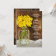 Poursuivez la célébration le lendemain de leur cérémonie de mariage avec la charmante invitation de brunch de mariage civil Country Mason Jar et Yellow Daisies. Cette invitation de déjeuner ou de petit-déjeuner après mariage rustique chic personnalisée, décontractée mais élégante, présente une photographie florale pittoresque d'un pot de conserve en verre rempli de fleurs de marguerite jaune et un fond en bois de grange brun patiné. Idée ou inspiration parfaite pour une célébration de fête de grange de style ferme ou ranch informel. Disponible sous forme d'invitation imprimée pour envoi postal ou en téléchargement numérique pour un partage facile en ligne.