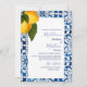 Les citrons et les carreaux méditerranéens bleus sont la base de ce design de mariage personnalisé chic et élégant.