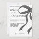 Une invitation de mariage noir et blanc chic avec un design de ruban élégant, alliant modernité et sophistication intemporelle.