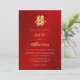 Cet élégant faire-part de mariage chinois est orné d'un double symbole de bonheur artistique en or sur un arrière - plan floral rouge rubis chatoyant. Noms de mariée et de mariée dans un élégant script manuscrit. Invitation à la cérémonie chinoise de faire-part de mariage ou de thé.