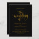 Cette élégante faire-part de mariage en noir et or est parfaite pour un mariage moderne. Le design simple présente une élégante calligraphie dorée sur un arrière - plan noir. La carte d'invitation comprend les détails du mariage au dos au lieu de payer une carte d'enceinte séparée.
