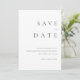 Mariage classique moderne Enregistrer la date Invitation. Texte justifié droit intemporel et élégant. La couleur du texte peut être changée en n'importe quelle couleur. Noir et blanc doux. Conception minimale.