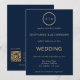 Invitation Mariage Classique Monogramme QR Code Bleu Nuit Or