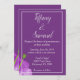 Faire-part de mariage fleurie violet classique, cet article est décoré dans un style floral violet et argenté. Affiché sur un arrière - plan royal violet, les détails de votre cérémonie sont enfermés dans une belle armature argentée. Le texte est présenté dans une belle police argentée avec une jolie illustration de fleur violette en bas à gauche de l'invitation. Personnalisez vos invitations aujourd'hui. Conception de l'invitation : WeddingsbyRhoadie Oeuvres d'art florales : AMBillustrations http://www.etsy.com/shop/AMBillustrations/