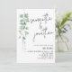 Invitation de mariage code QR 3 photos Eucalyptus Moderne. Un style botanique minimaliste avec une branche élégante de feuilles d'eucalyptus à l'aquarelle descendant sur le côté gauche et une typographie moderne élégante. Au verso, remplacez les 3 images d'exemple par les vôtres. Modifiez l'URL du site Web exemple dans le modèle par celui de votre propre site Web et votre code QR sera généré automatiquement.