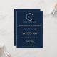 Invitation Mariage code QR monogramme or et bleu marine éléga