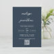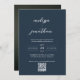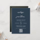 Invitation de mariage code QR monogramme photo bleu marine moderne.