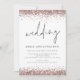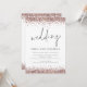 Faire-part de mariage informel avec code QR paillettes or rose tendance. Avec un code QR vers votre site web de mariage au dos pour que vos invités puissent répondre et voir tous les détails en ligne sans avoir besoin d'insertions séparées. Votre code QR sera généré automatiquement pour mettre à jour l'exemple de code dans le design, lorsque vous changerez simplement l'URL d'exemple dans le modèle avec l'URL de votre propre site web de mariage. Ou vous pouvez le supprimer si ce n'est pas nécessaire. Un ensemble de script manuscrit informel pour mariage et le reste du texte que vous pouvez facilement personnaliser, avec une bordure de paillettes fausses en or rose des deux côtés.