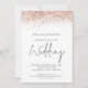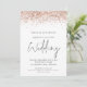 Élégant code QR à paillettes or rose pour mariage. Ajoutez votre code QR sur votre site web de mariage au verso pour offrir à vos invités une option pratique pour répondre et voir tous les détails sans avoir besoin de cartes de réponse et de détails séparées. Ou vous pouvez supprimer ceci si non requis. Un ensemble de texte manuscrit pour le mariage et le reste du texte que vous pouvez facilement personnaliser, avec une bordure de paillettes fausses en or rose sur le bord supérieur des deux côtés.