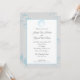 Invitation de mariage de plage d'argent et bleu avec coquillage élégant et étoile de mer et monogramme à l'envers de cette invitation de mariage de plage de destination romantique.