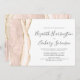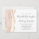 Le bord gauche de cette élégante faire-part de mariage moderne est doté d'une bordure en aquarelle dans les tons ivoire et blush, bordée d'une parties scintillant en faux or. Le texte personnalisable combine écriture manuscrite, copperplate et polices italiques en gris fusain sur un arrière - plan blanc. L'envers est assorti d'un design d'agate en ivoire et en or.