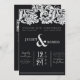 Invitation Mariage damassé florale moderne noir et blanc