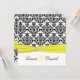 Cette invitation mariage damassé en noir et blanc a un ruban IMPRIMÉ jaune et une boucle de bijoux IMPRIMÉE dessus. Le texte et le type de papier sont personnalisables. Si vous avez besoin d'articles correspondants, veuillez envoyer un courriel à niteowlstudio@gmail.com avec votre demande. Les éléments correspondants sont présentés ci-dessous. ****S'IL VOUS PLAÎT être conscient que j'ai initialement fait afficher cette conception avec les noms en jaune sur la conception, et ils ne s'affichent pas du tout sur l'invitation, donc si vous changez les couleurs de police en jaune, vous ne serez probablement pas en mesure de lire le texte.