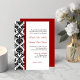 Parfait pour une affaire de cravate noire. Cette faire-part de mariage élégante et formelle est conçue avec un motif damassé noir et blanc classique et accentuée d'une bande de verticule rouge. N'hésitez pas à me contacter via la fonction de message si vous avez besoin d'aide pour ce design ou si vous souhaitez ajouter une autre personnalisation. Ou vous pouvez me contacter par courriel à zazzlestores@yahoo.com. Oeuvre dessinée par LZ Dezigns.
