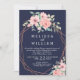 Faire-part de mariage floral géométrique en cuivre de marine. Belles invitations de mariage avec texte blanc et gris sur texte marine orné d'un cadre géométrique en cuivre unique et d'une impression numériquement ajustée d'un arrangement floral aquarelle peint à la main dans les tons rose, corail, vert et bleu-gris. Design offre un espace supplémentaire pour les noms des parents, personnalisez avec vos détails mariages. Visitez notre magasin Austen & Grace pour voir nos gammes de créateurs en pleine croissance, et contactez-nous si vous avez besoin de produits complémentaires ou de toute assistance via le bouton contact ou email directement à contact@austenandgrace.com