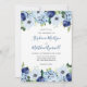 Ces invitations de mariage présentent un design floral moderne avec des fleurs d'aquarelle bleu et marine, des roses, des hydrangées, des anémones et du feuillage. Personnalisez-les avec votre propre texte.