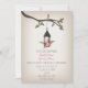 faire-part de mariage illustrant une lanterne remplie d'un arrangement floral rose accroché à une branche d'arbre avec des feuilles verts. Personnalisez le texte avec les détails de votre occasion.