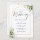 Cet élégant faire-part de mariage d'arc feuille en or vert botanique peut être personnalisé avec vos informations en typographie chic avec les détails de votre site mariage et votre code QR au verso. Conçu par Thisisnotme©