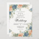 Des fleurs d'aquarelle délicates dans la pêche et le bleu poussiéreux créent une bordure douce et romantique. Ce design évoque une humeur douce et éthérée avec ses accents floraux peintres. Parfait pour un événement raffiné et visuellement beau.