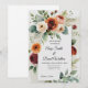 Célébrez votre journée spéciale avec cette magnifique invitation mariage de automne rustique avec un bouquet de fleurs d'aquarelle en rouille riche, orange brûlée, rose rousse et crème, accentué de feuillage vert luxuriant et de détails botaniques délicats. Le design offre un espace vierge généreux pour votre texte de mariage personnalisé, ce qui le rend parfait pour les célébrations d'automne, les thèmes boho-chic, ou élégants mariages de campagne. Imprimée avec des détails de haute qualité, cette invitation donne un ton chaleureux et romantique pour votre grand jour.