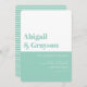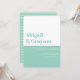 Cette faire-part de mariage élégante présente vos noms en caractères gras et les détails de votre mariage dans un bloc de couleur menthe.