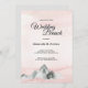 Cette invitation de brunch mariage Pink Sunrise Mountain apporte une touche classe et unique, mais simple et décontractée à votre brunch mariage. Les nuances de soleil levant et couché de rose, mauve, pêche, rougit, corail et rose poussiéreux, baisé de parties scintillant d'or étoilé autour du texte de calligraphie stylisé apporte une nature paisible et minimale aux montagnes gris aquarelle pour une célébration de mariage sur le thème de la montagne.