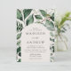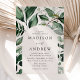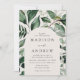 Elégantes invitations de mariage avec vos détails mariages nichés à l'intérieur d'un cadre voûté entouré d'eucalyptus, fougères et autres riches verdure avec un arrière - plan crème. Les invitations de mariage de l'arc botanique se retournent vers un arrière - plan vert foncé et solide. Conçu pour coordonner avec notre collection de mariages de verdure Abondante.