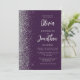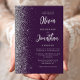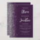 Le bord gauche de cette élégante faire-part de mariage moderne est orné d'une bordure en faux parties scintillant argenté. Le texte personnalisable combine un script gris argenté pâle et des polices sans serif sur un arrière - plan violet foncé. L'envers est assorti d'un design violet et argenté.
