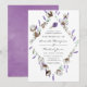 Invitation de mariage tendance peinte à la main en lavande et coton pour l'automne/hiver avec un fond lavé à l'aquarelle violette.