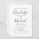 Doté de noms de style signature, cet élégant faire-part de mariage bleu marine peut être personnalisé avec toutes vos informations spéciales de mariage sur le devant, vos détails de site Web mariage, et votre code QR au verso. Conçu par Thisisnotme©