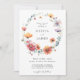 Cette conception comporte une délicate couronne d'aquarelle en fleur sauvage dans les tons bleu, rouge, orange, violet et or. Parfait pour les mariages de plein air du printemps et de l'été.