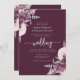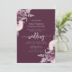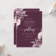 Cette élégante invitation au mariage présente des bouquets mauves fleuris, parés d'une végétation en faux feuille d'argent dans deux coins, sur un arrière - plan mauve violet profond. Le texte personnalisable combine des polices sérif gris argenté, italique et écriture manuscrite. Le design floral est répété à l'envers.