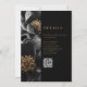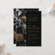 Cet élégant faire-part de mariage floral noir et or peut être personnalisé avec vos informations dans la typographie moderne et les détails de votre site mariage sur l'inverse. Conçu par Thisisnotme©